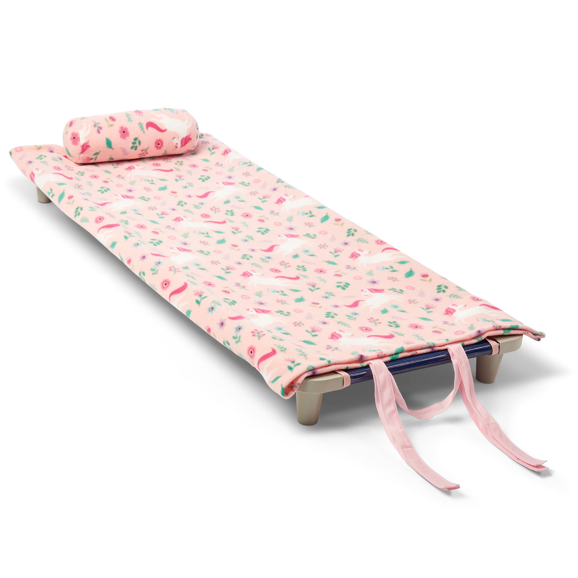 • Crafted from ultra-soft fleece with an attached pillow for enhanced comfort, making it ideal for nap time. Features elastic straps for easy portability, so you can take it anywhere!